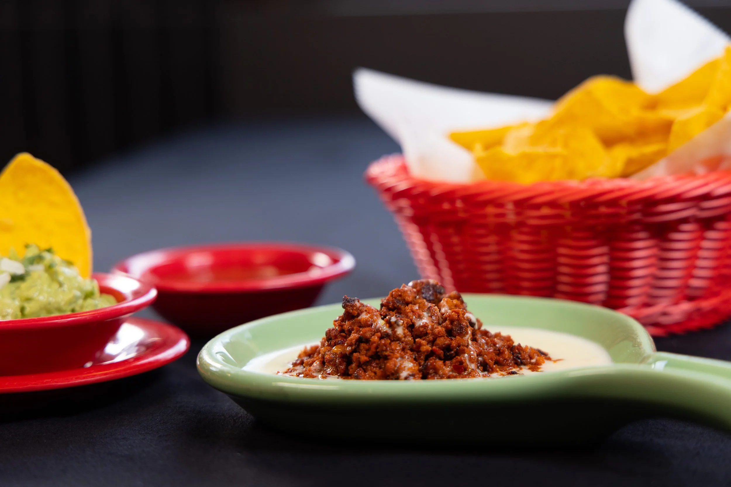House-made chorizo and bacon loaded onto beans and smothered with our signature cheese dip.