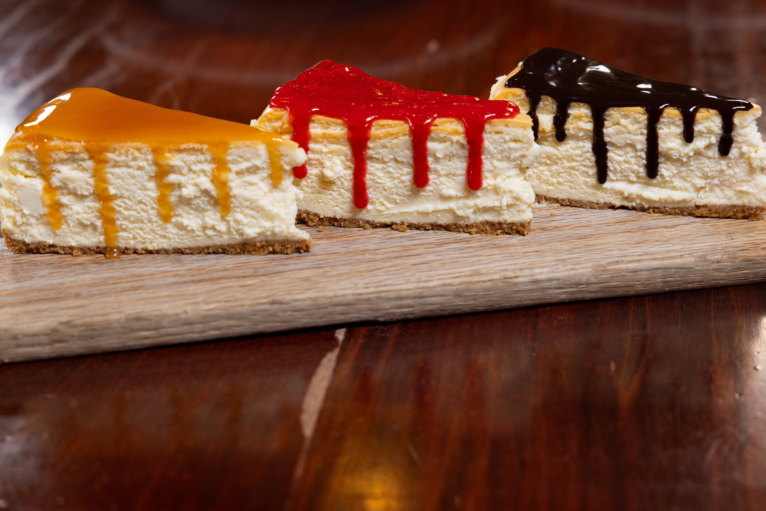 Rich and creamy New York-style cheesecake with subtle notes of real vanilla bean tops a homemade, hand-pressed graham cracker crust. Topped with your choice of chocolate, caramel, or strawberry sauce.